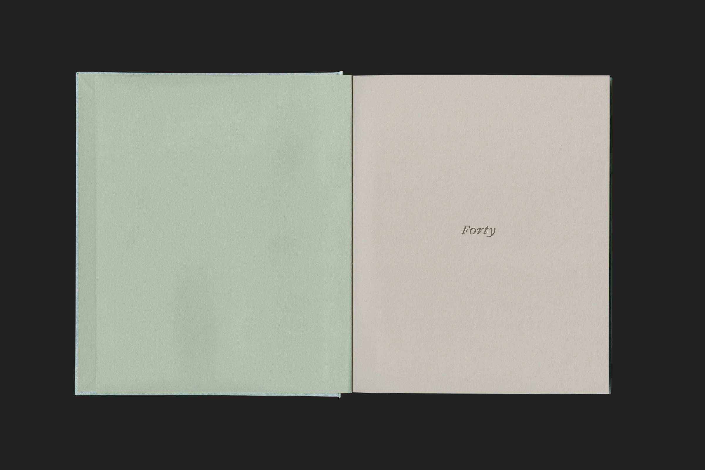 Each element of the book is printed on a different paper stock to create an ongoing tactility as your leaf through the pages. A plate section of works ordered chronologically from new to old, is printed on a clean white uncoated stock, followed by an extensive biographical text written by the artistâs son that shifts the tone to a warm, rough textured material. An archive section of thumbnail imagery and work information ends the publication, printed in dark grey on a lighter grey paper.Â