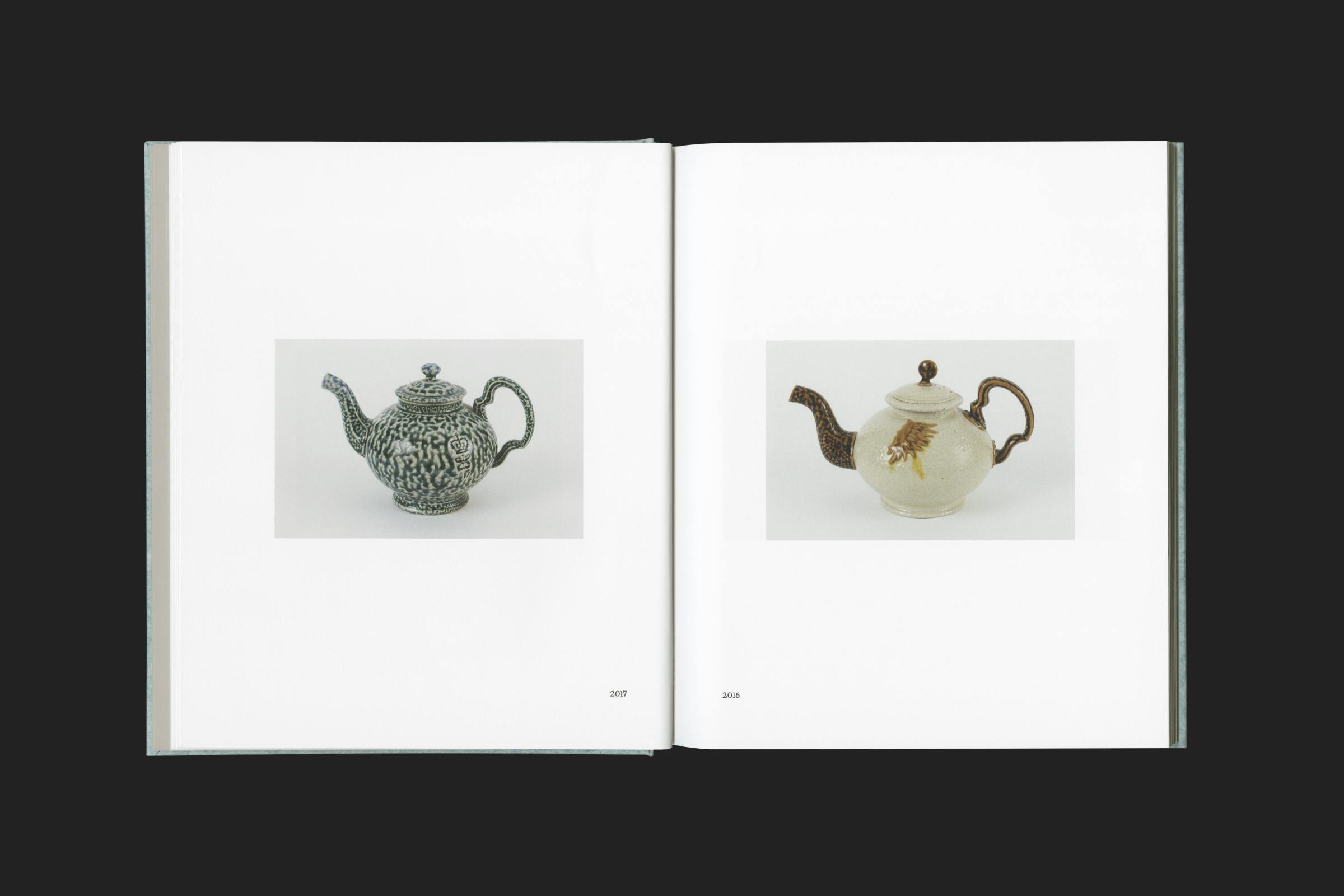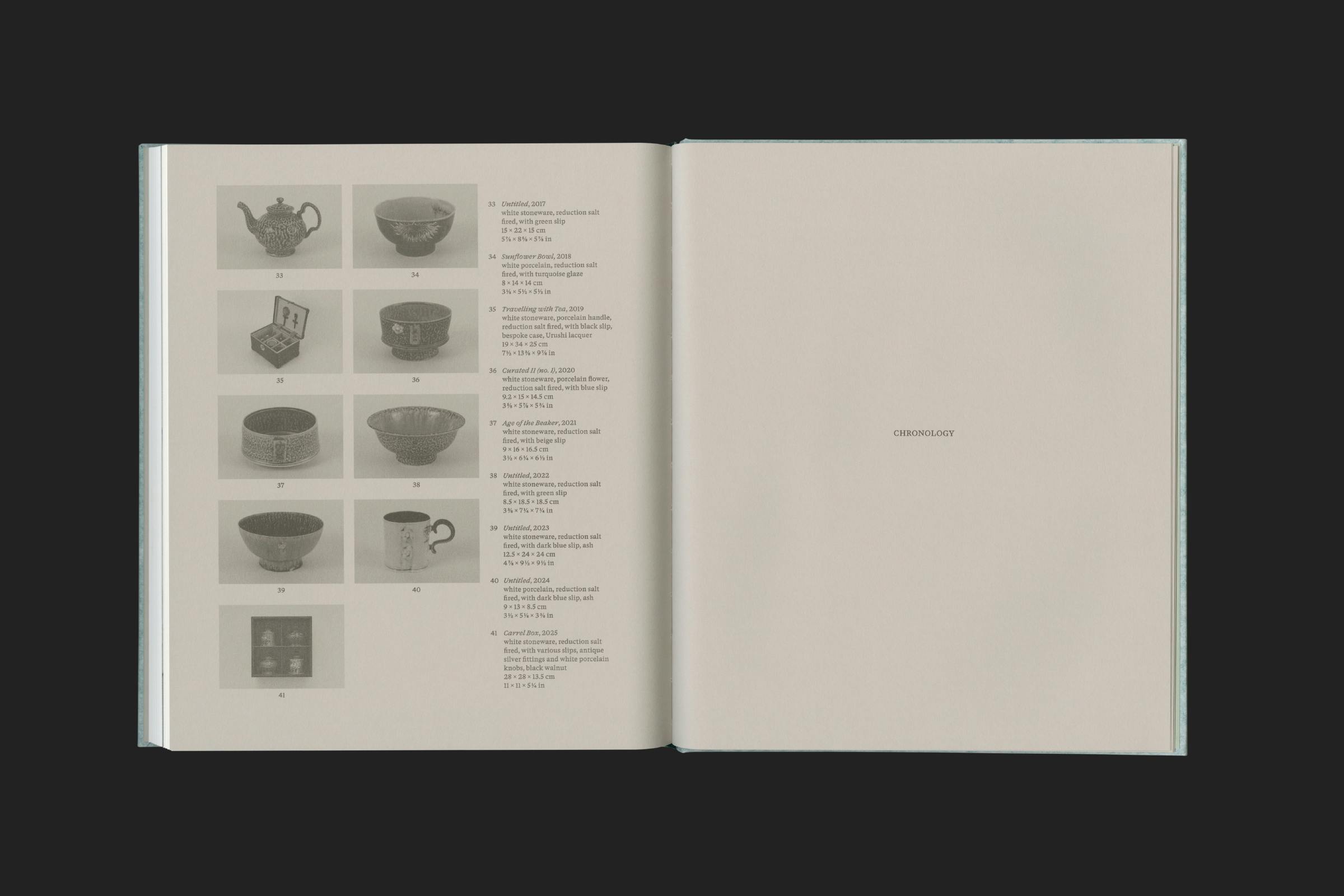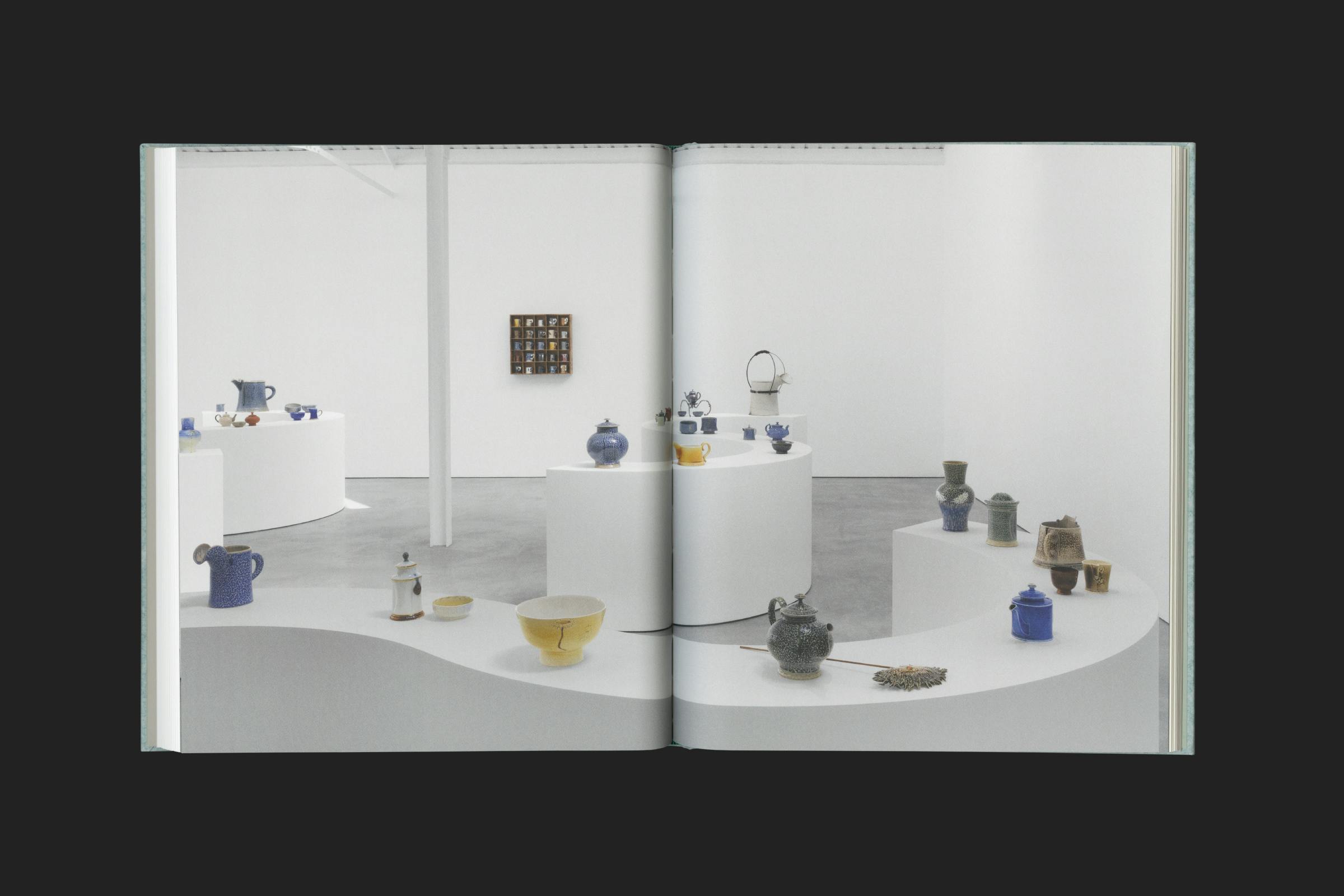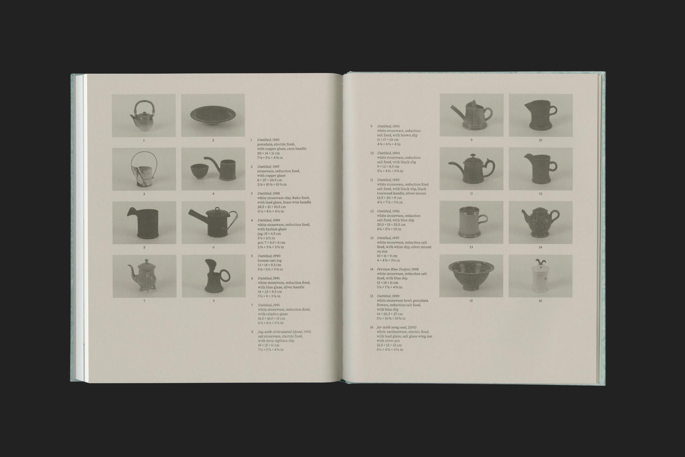 The texture of the cover references Harrison's use of salt glaze, a technique where salt is thrown into a hot kiln, causing it to vaporise and chemically react, leaving a slightly translucent and dappled finish.