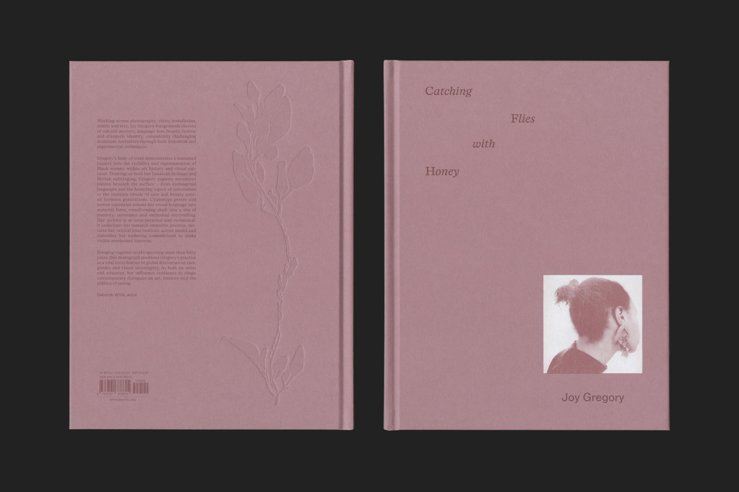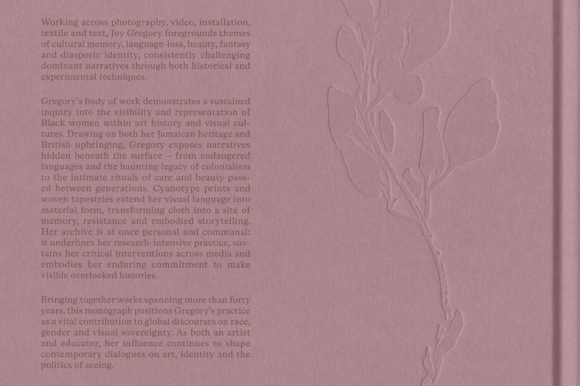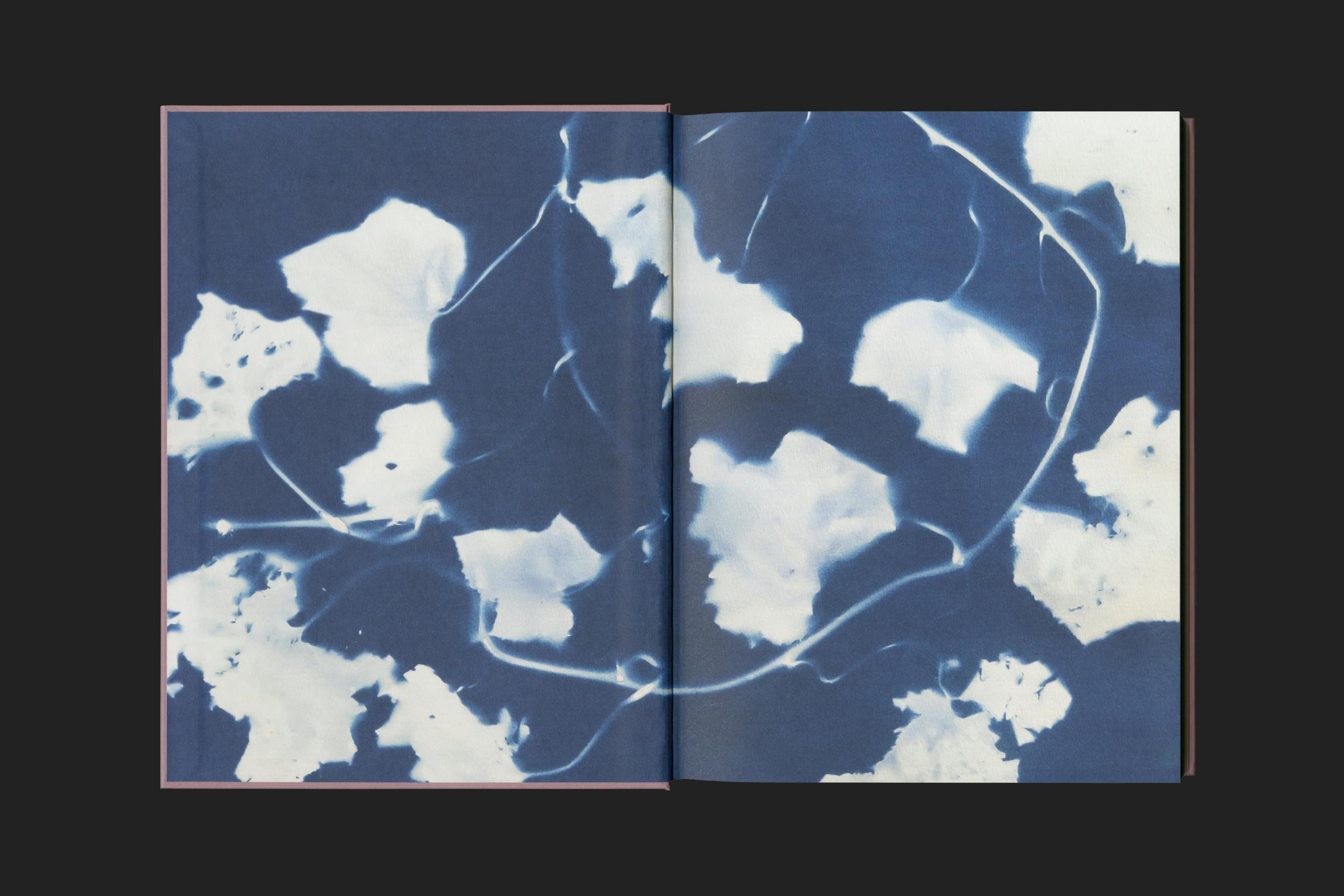 The cover poetically interplays typography and stylistic interpretations of a self-portrait and a blind-debossed branch of vegetation taken from Gregory’s cyanotype explorations.