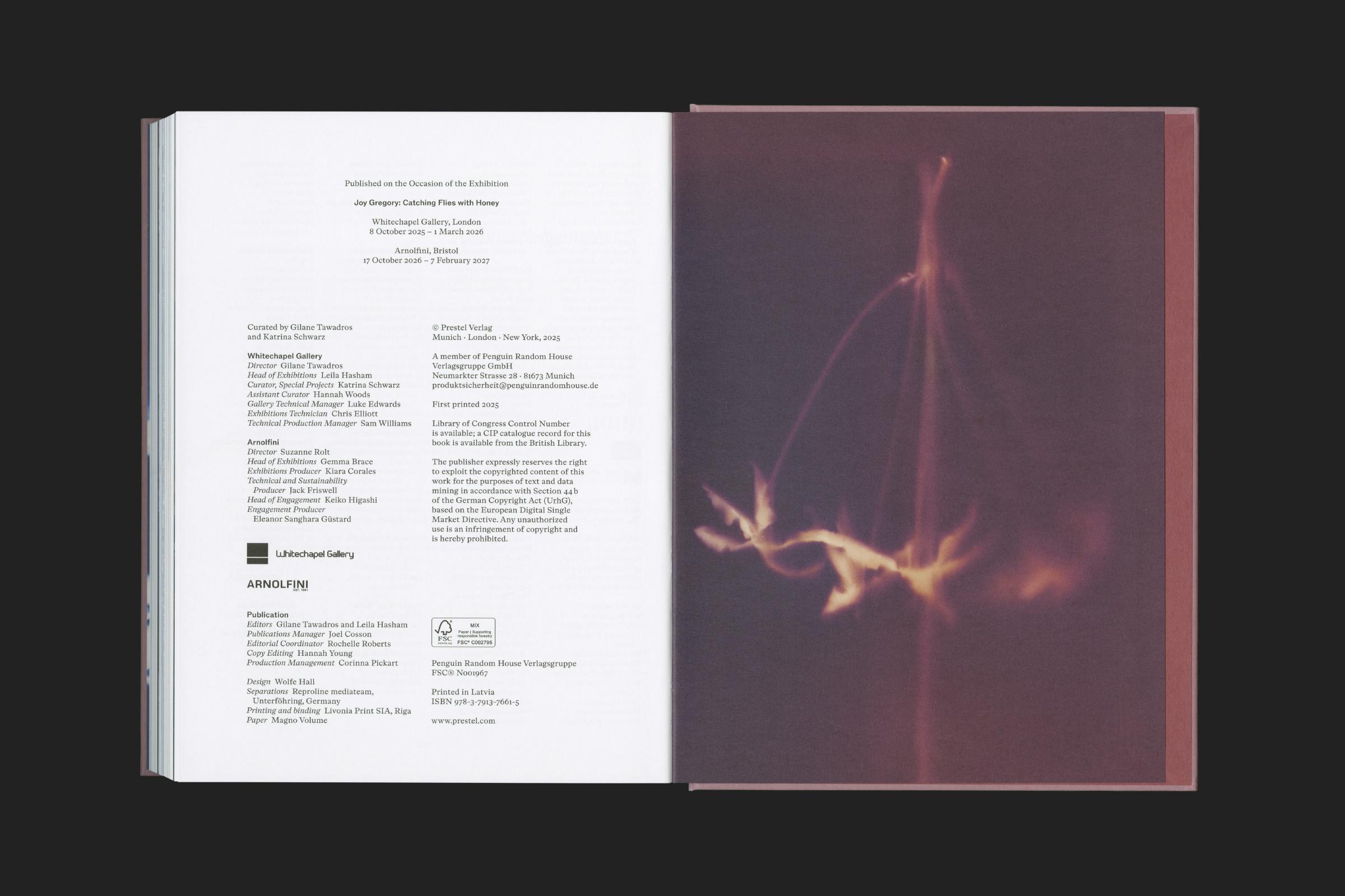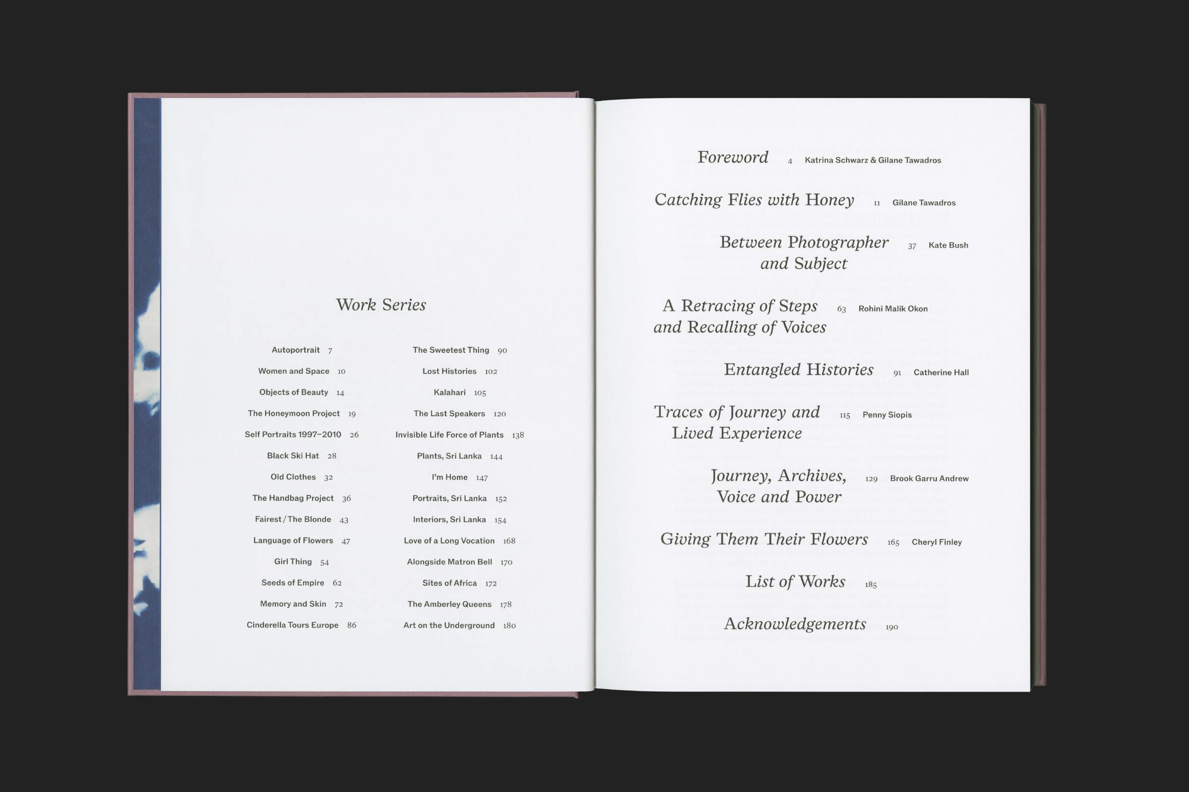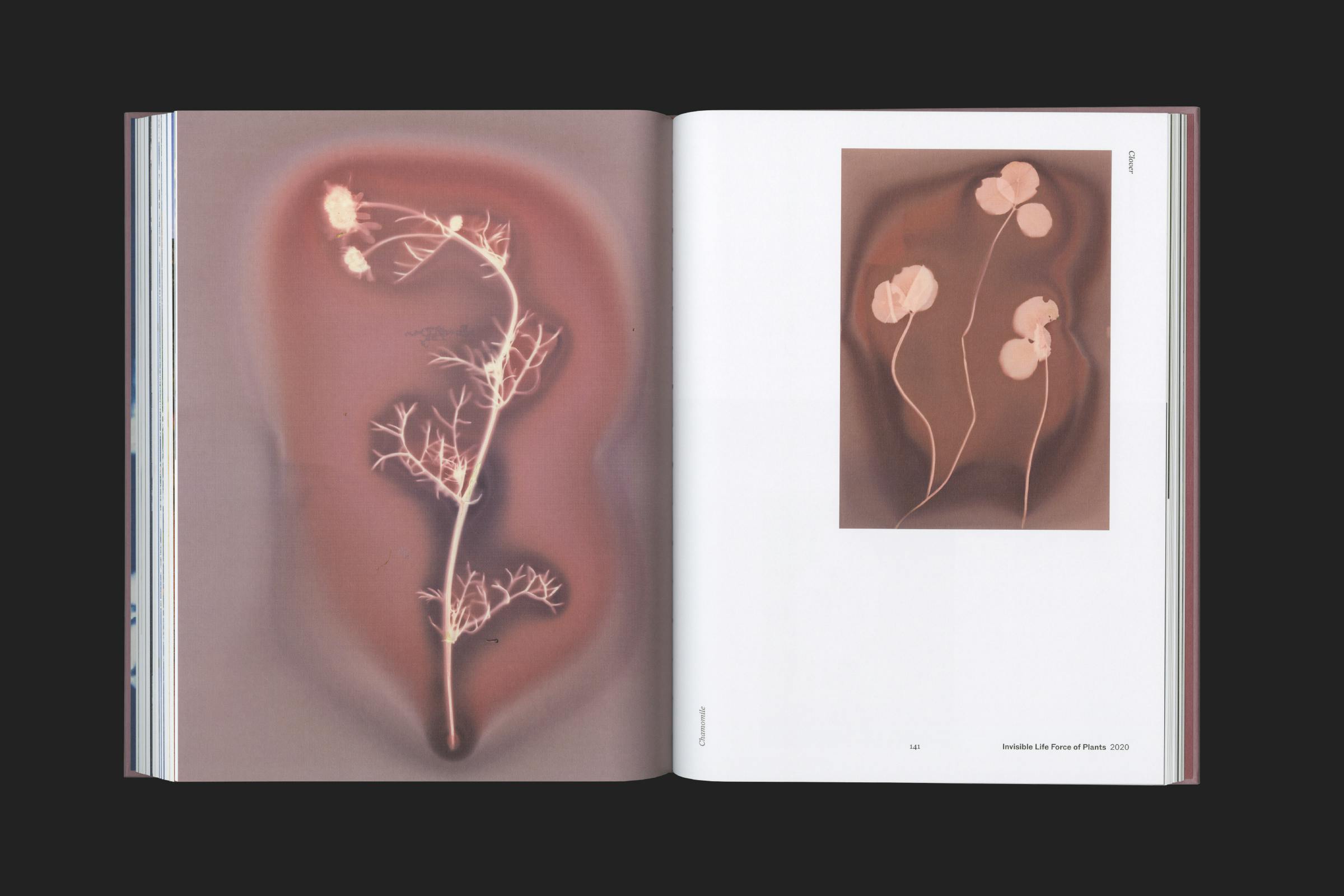 The cover poetically interplays typography and stylistic interpretations of a self-portrait and a blind-debossed branch of vegetation taken from Gregory’s cyanotype explorations.