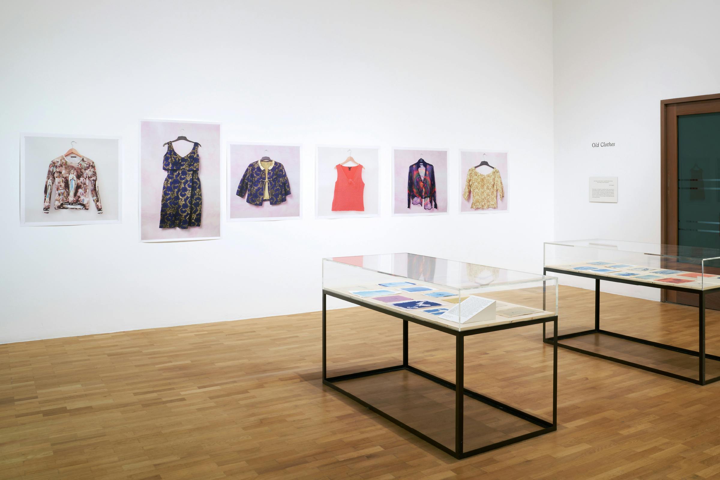 The exhibition design forms a simplified translation of decorative design elements found in the catalogue. Taking the stylised title formatting for each series of work, and using physical panels to create easy to locate points throughout the hang.